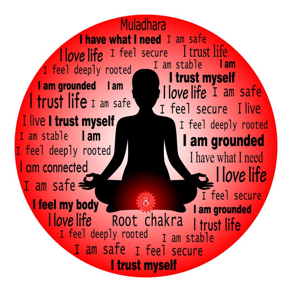 Our bodies are full of energy focal points called Chakras. Each of these points affect aspects of our emotional and physical well-being that are associated with each Chakra. The Root Chakra is also known as Muladhara. Mula means root and adhara means support. The Chakras begin at the base of the spine starting with the Root Chakra. From there the Chakras move vertically up the body following with the Sacral, Solar Plexus, Heart, Throat, Third Eye, and Crown Chakra.